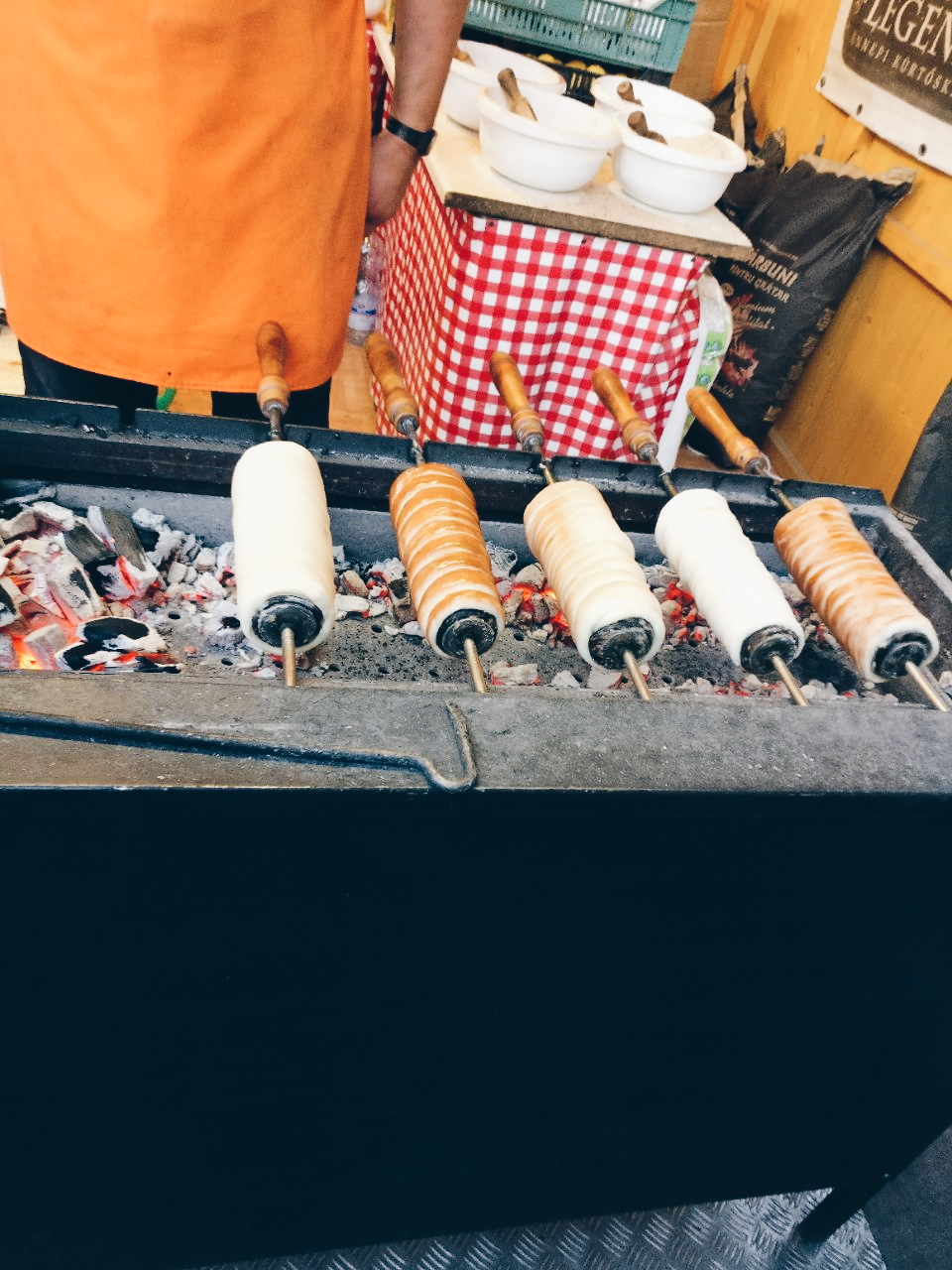 Bis zum Palatschinken sind wir allerdings noch nicht durchgedrungen. Am gestrigen Abend haben wir uns auf dem Weinfest Rosalia einen traditionell zubereiteten Baumkuchen gegönnt… unbeschreiblich lecker.